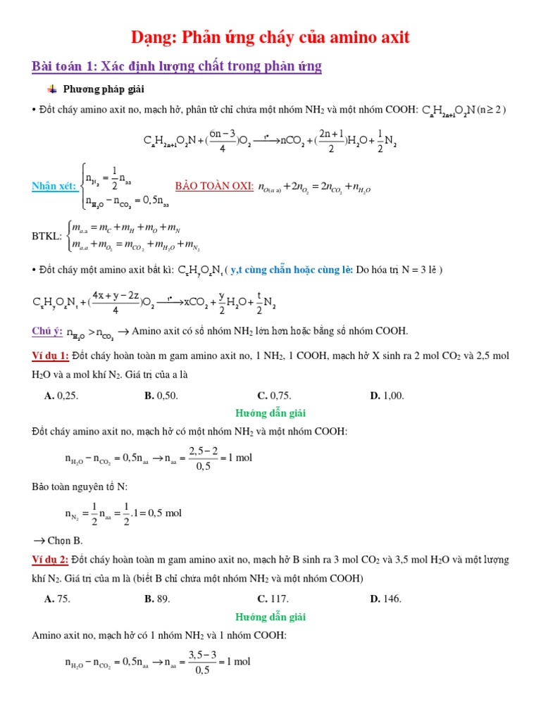 Dạng 1 Bai Toan đốt Chay Aminoaxit Tự Học 365