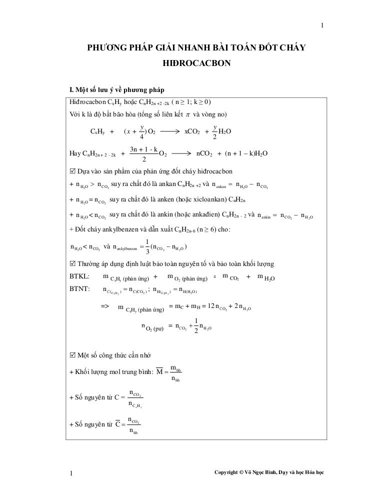 Phuong Phap Giai Nhanh Toan Hydrocacbon