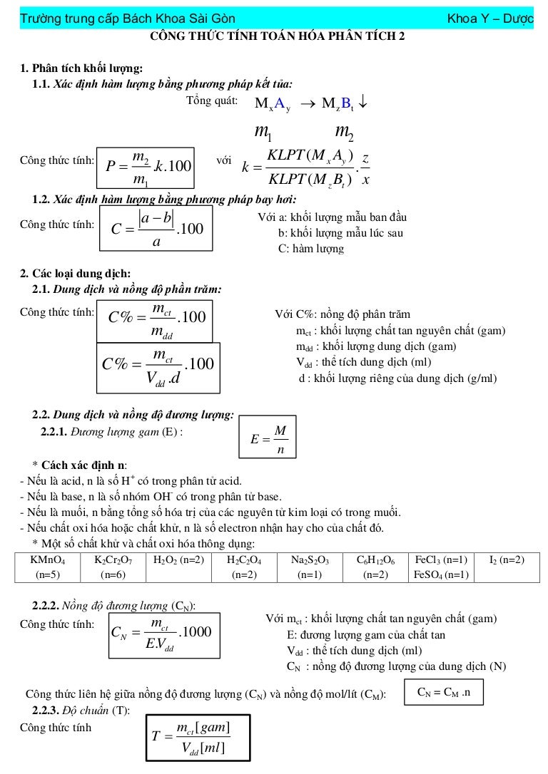 Cong Thức Tinh Nồng độ đương Lượng Cn Va Vi Dụ