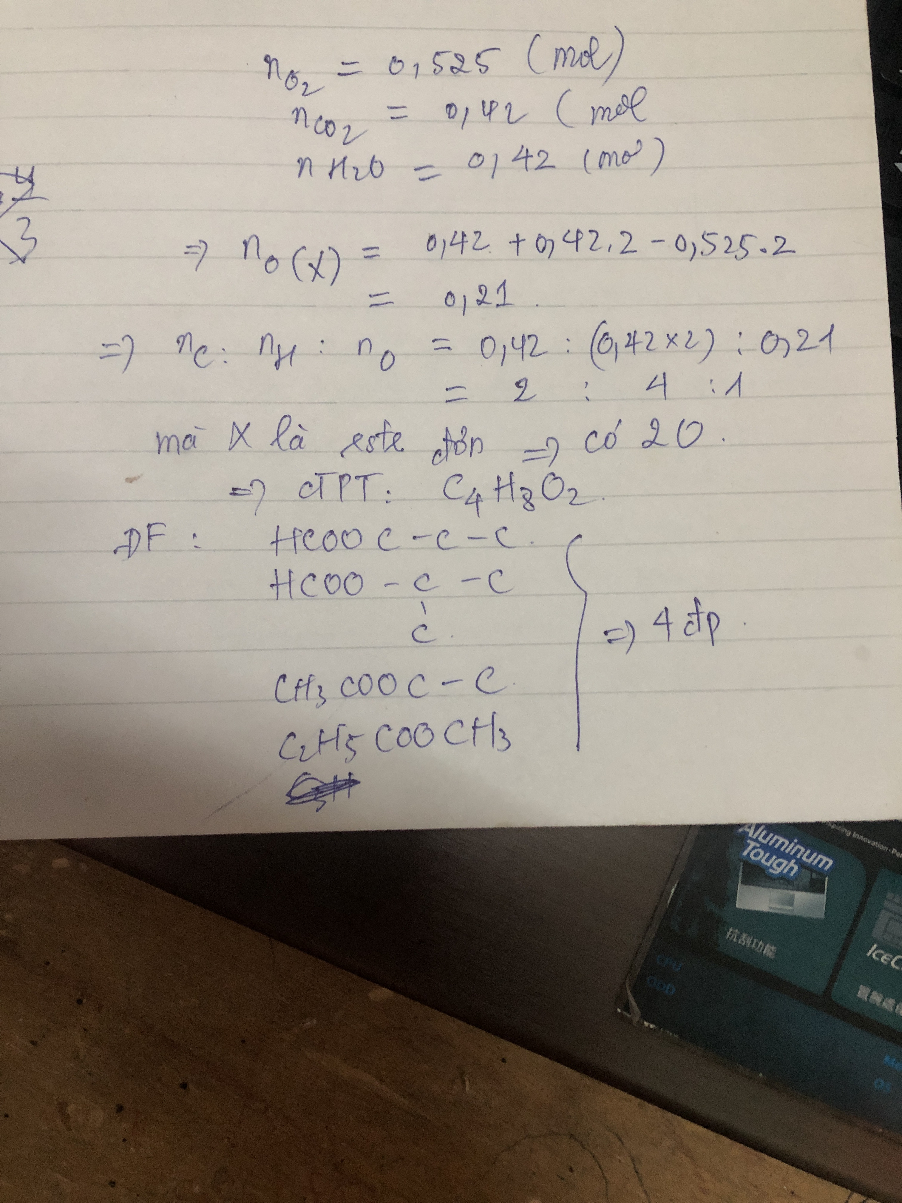 đốt Chay Hoan Toan 3 7g Hỗn Hợp 2 Este đồng Phan X Va Y Vietjack Com